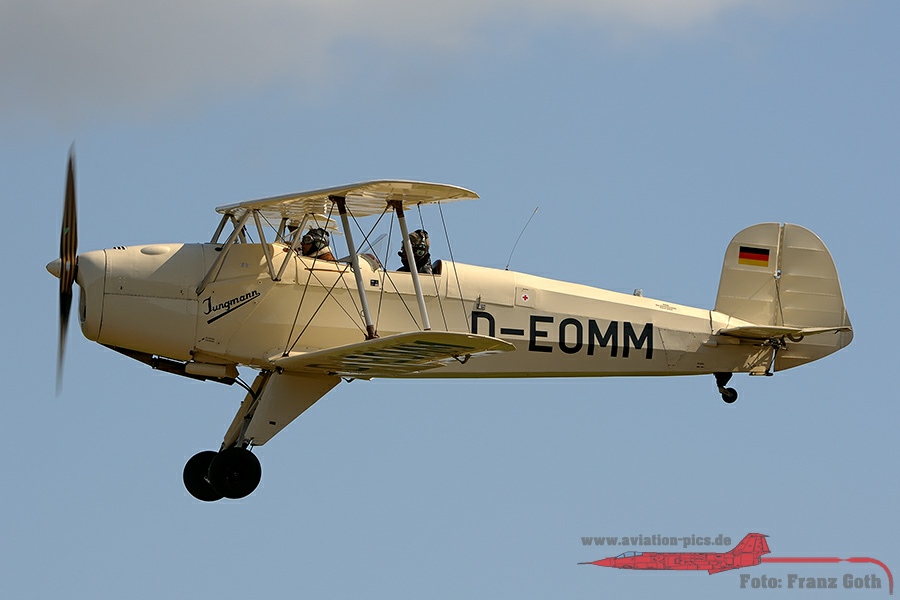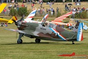 Bleriot XI Model 1910, SE-AMZ, Baujahr 1918, Mikael Carlson (S), Bücker 131 Jungmann, D-EEGN, Baujahr 1949, Gert Bender, Bücker 131 Jungmann, HB-UVF, Baujahr 1939, Michel Jacquemai (CH), Bücker 131, D-EOMM, Baujahr 1954, Focke Wulf FW 44 J Stieglitz, SE-BWM, Baujahr 1939, Alfred Preuß, Focke Wulf FW 44 Stieglitz, D-EMOF, Baujahr 1937, Hans Jürgen Storck, DeHavilland DH -82 A Tiger Moth, D-EORX, Baujahr 1940, Stephan Gottwald, DeHavilland DH 82 A Tiger Moth, D-EXMM, Baujahr 1942, Carlfred Dennefleh