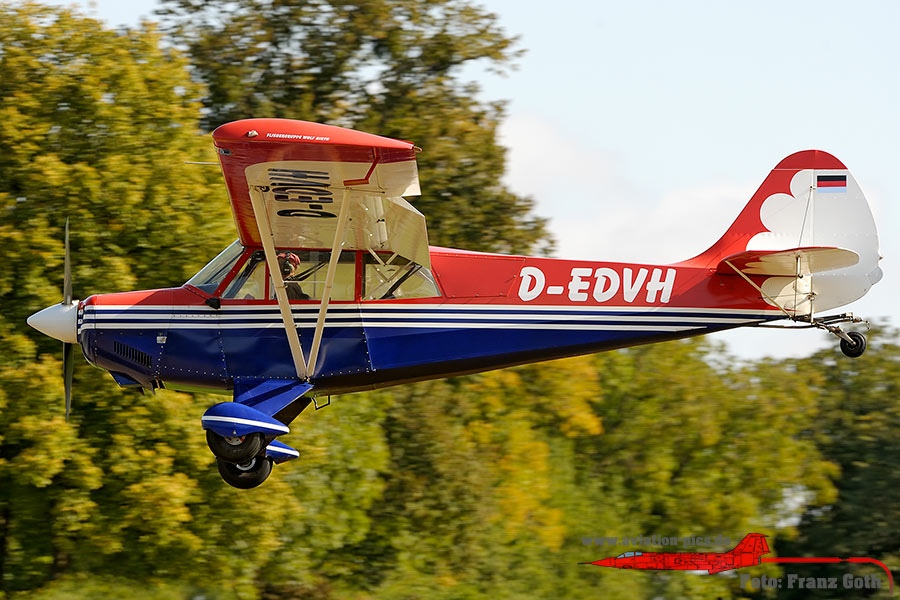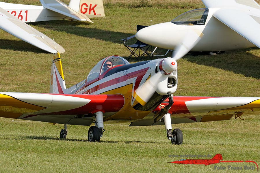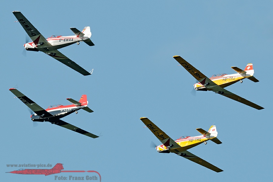Zlin 526 ASM, HB-TRQ, Baujahr 1967, Zlin Z 526 ASM, D-EWXA, Baujahr 1967, 4er Formation mit Zlin Z 536F, Zlin Z 526 und Zlin Z 526 ASM, North American AT-6D Texan, D-FHGL, D-FHGK, Baujahr 1953, 1942, Walter & Toni Eichhorn, North American AT-6D Texan, D-FHGL, Baujahr 1953, Toni Eichhorn, PZL106 AR Kruk, D-FOAB (DDR-TAB), Baujahr 1978, Dieter Gehling, Lisunov Li-2 (Russischer Nachbau der Douglas DC-3), HA-LIX, "Kármán Tódor" von der Goldtimer Foundation aus Ungarn, Aviat A-1 Husky, D-EDVH, Fliegergruppe Wolf Hirth e.V., Morava L-200D, D-GULL, Baujahr 1962, Messerschmitt Bf 108D-1 Taifun, D-EBEI, Baujahr 1940, Deutsche Lufthansa Berlin Stiftung, T-6 Harvard Mk.4, D-FAME, Baujahr 1952, Josef Schumacher, Piper PA-18-95 Super Cub, D-EBFB, c/n 18-3217. ex 53-4817, L143 und OL-L43, Baujahr 1954, Dornier Do 27-B1, D-EWRG (AS+928), c/n 276, Baujahr 1958, Piaggio P-149D D-ECBW (92+19), c/n 316, Baujahr 1958, Dornier Do 27-A1, D-EDNW (ex 55+46), c/n 176, IGM-Do 27 der SFG Wunstorf, Aero L-29 Delfin RA-3413K, Baujahr 1973, Walter Eichhorn