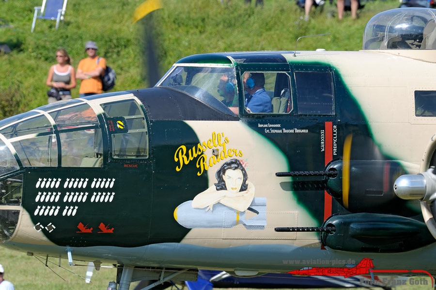 Lisunov Li-2 (Russischer Nachbau der Douglas DC-3), HA-LIX, "Kármán Tódor" von der Goldtimer Foundation aus Ungarn, Nord 1101 Noralpha (Messerschmitt Me 208), Erstflug 1944, F-GMCY, Amicale Jean-Baptiste Salis, AJBS aus La Ferté-Alais (F), Grumman TBM-3R Avenger, HB-RDG / RB-319 Privatbesitz aus der Schweiz, North American B-25J Mitchell "Russell's Raiders", F-AZZU. Diese B-25 musste am 31.05.2011 in der Nähe von Melun-Villaroche, süd-östlich von Paris, notlanden und ist zurzeit nicht mehr flugfähig.