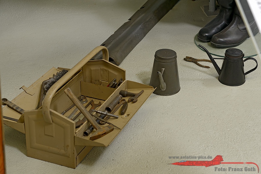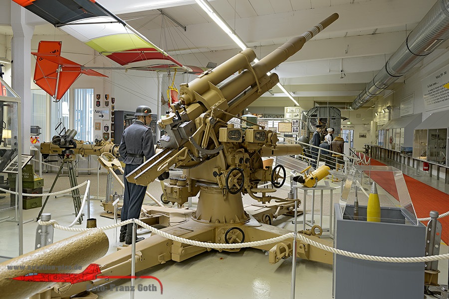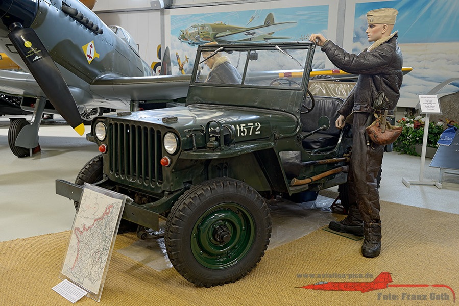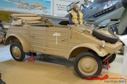 BMW R12 Krad Gespann mit Anhänger, deutsche Luftwaffe, JG 51 Mölders, VW Kübelwagen Typ 82, Willys Jeep in britischem Grün, 200 Liter Treibstoff Fässer der deutschen Wehrmacht (wurden im Feld zur Flugzeugbetankung mit Handpumpe benutzt), Werkzeugkasten und Ölkanne eines Flugzeugwarts, Unterlegkeil an einem Bf 109 Rad, Hauptrad von einem Messerschmitt Me 262 Düsenjäger, Daimler Benz DB 605A 12 Zylinder Reiehnmotor (z.B. in Bf 109G-K eingebaut), im Vordergrund ein Junkers Jumo 213 (Fw 190D, Ta 152, Ju 188) und im Hintergrund ein Rolls Royce Merlin (Spitfire und Mustang), Junkers Jumo 004 A-022 Turbinen Strahltriebwerk welche in der Messerschmitt Me 262 verbaut wurden, Kommandogerät 40 (Kdo.Ger.40) zur Entfernungsbestimmung anfliegender Luftziele (Flak), Flakscheinwerfer zum Suchen von Luftzielen bei Nacht, Spiegeldurchmesser 150 cm, Reichweite bis 12.000 Meter, Die berühmte 8,8 cm Flak 36