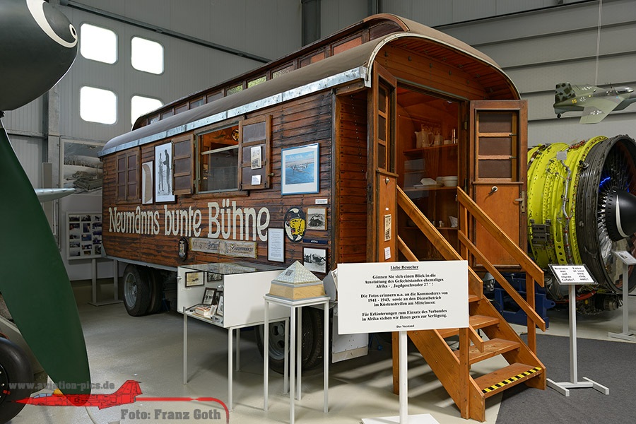 Rekonstruktion von Eduard (Edu) Neumanns Gefechtsstand (Kommodore JG 27 in Afrika). Er bestand aus einem ehemaligen Zirkuswagen und wurde Neumanns Bunte Bühne genannt