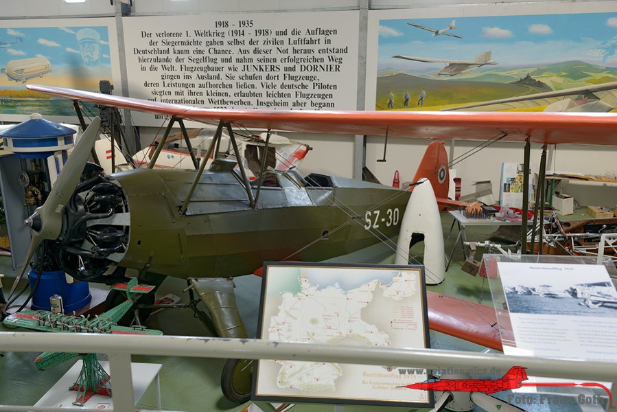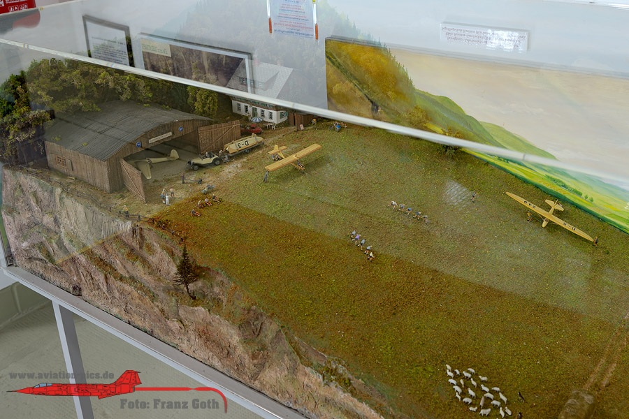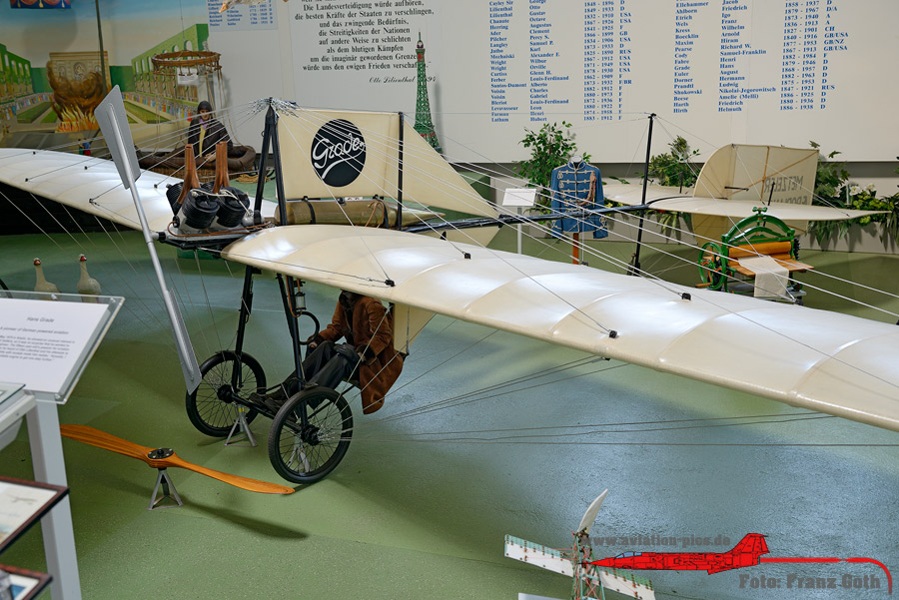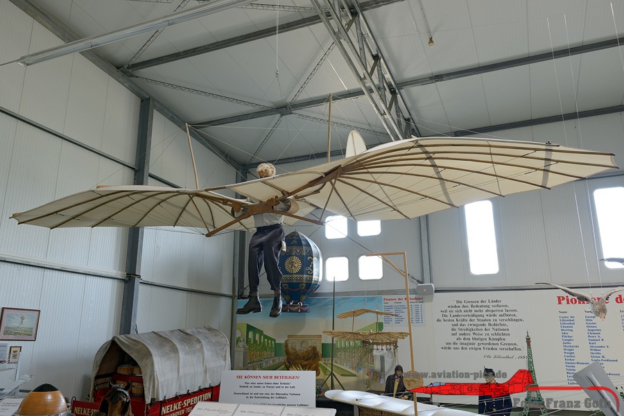 Luftfahrtmuseum Hannover Laatzen, Otto Lilienthal mit seinem Lilienthal Normalsegelapparat, Hans Grade und sein Grade Eindecker, Horwath III Schwalbe, Rieseler RIII 22 Stahlwerk Mark, Ryan M2 NYP, Spirit of St. Louis, Junkers F 13a, Klemm L 25 D, Focke-Wulf Fw 44 Stieglitz, Stampe SV 4 C, Fokker E.III, Fokker Dr.I, Halberstadt Cl.IV Heckteil, Sopwith F1 Camel, Nieuport 17, Diorama Pilotenschulung mit Schulgleiter SG 38 und Grunau Baby