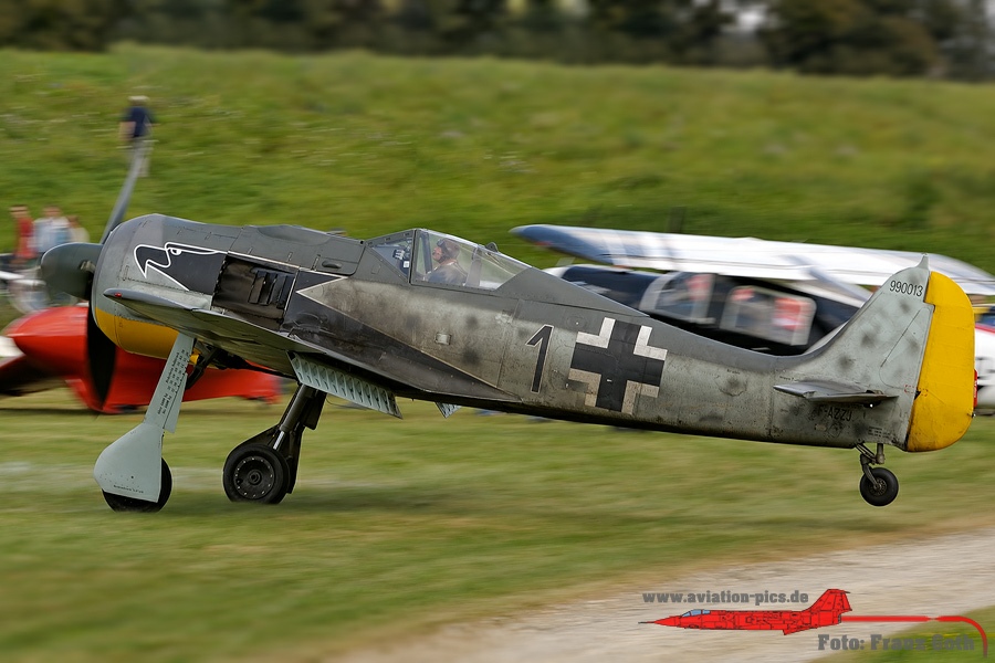 In den Farben der Fw 190A-4, W.Nr. 734, Schwarze 1, geflogen von Oberleutnant Horst Hannig, Staffelkapitan der 2./JG-2 "Richthofen“, Triqueville (Frankreich) 1943. Erstflug im Mai 2009, Zulassungsnummer F-AZZJ.