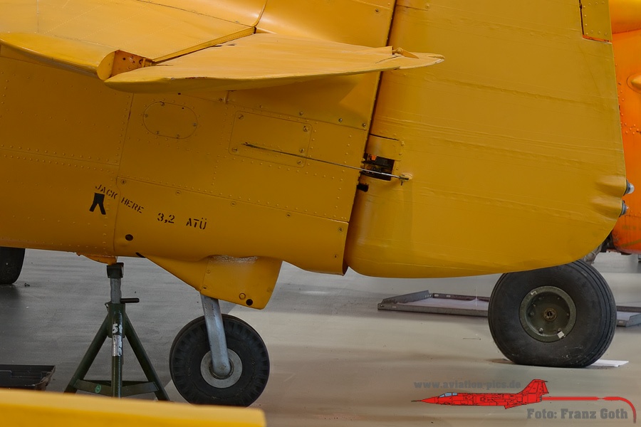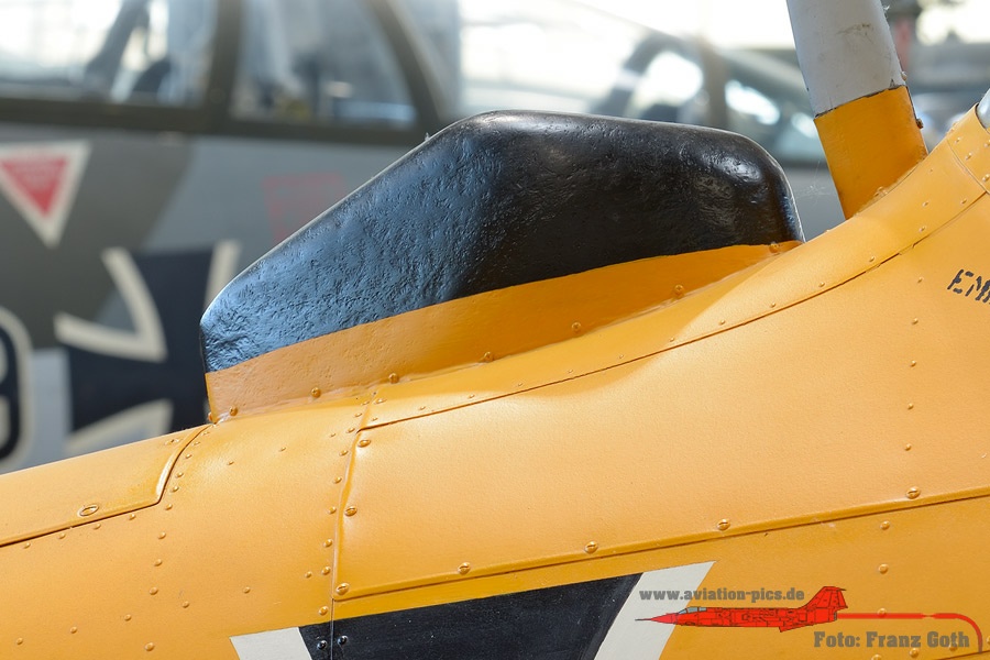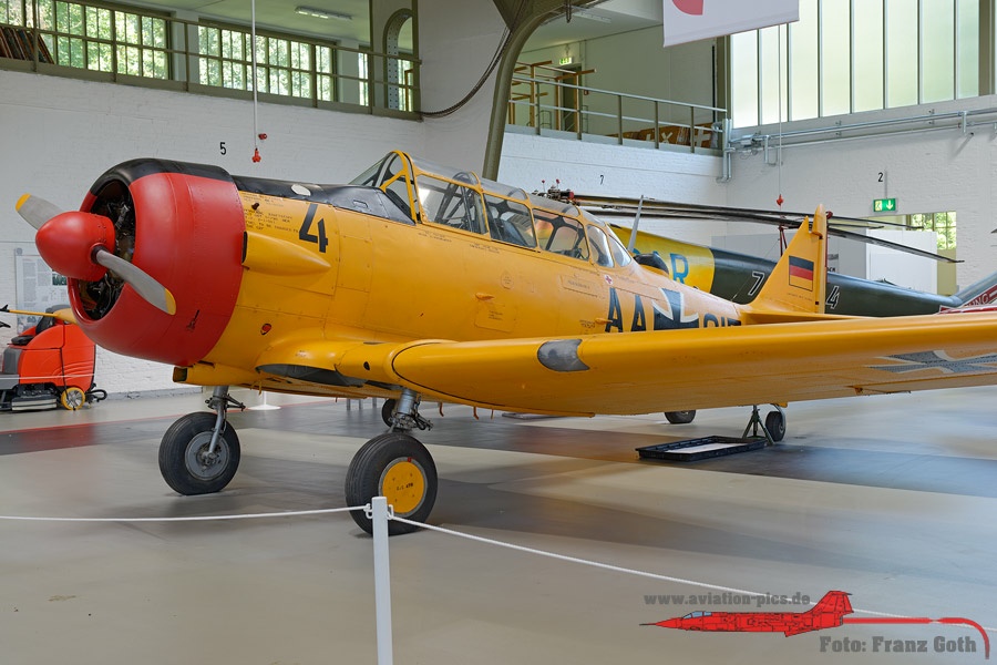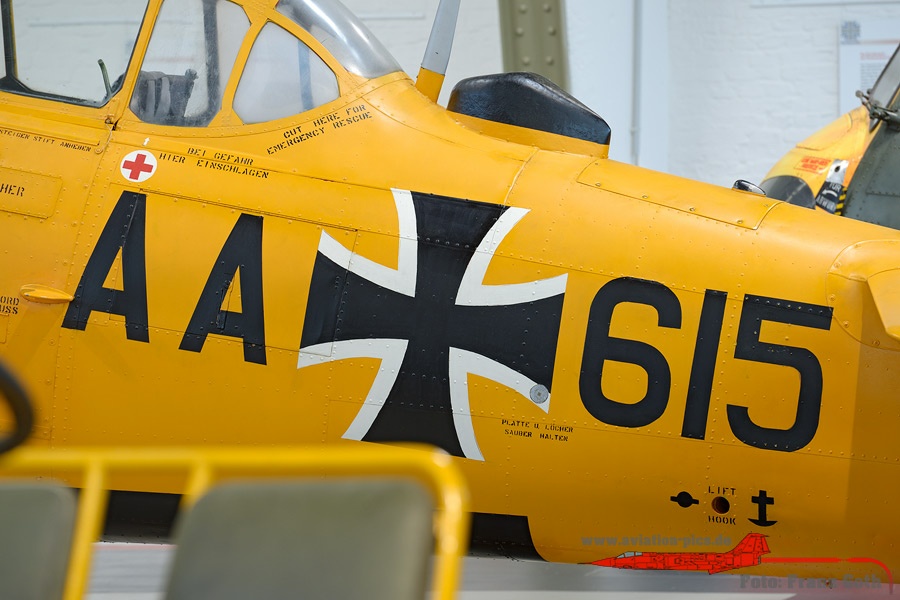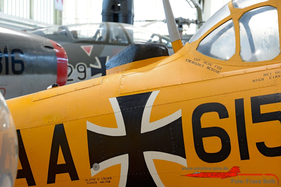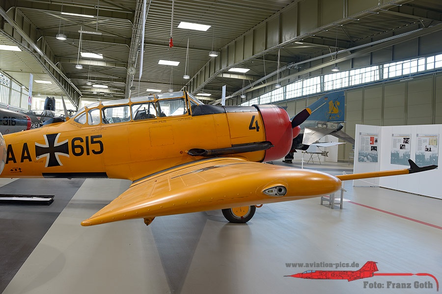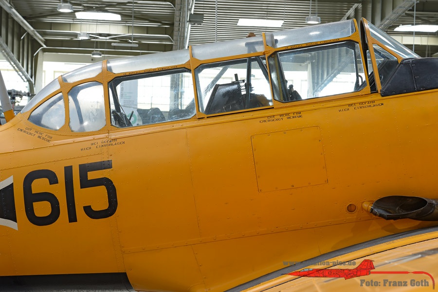 Die hier ausgestellte CCF ( Canada Car and Foundry) Harvard Mk.IV in den Farben der FFS A, stationiert in Landsberg. Zeitweise gehörte dieses Flugzeug zum Kunstflugteam der FFS A. Ein Teil der Harvards gingen auch an die TSLw 1 in Kaufbeuren. Kanada lieferte im Jahre 1956 135 dieser „Zitronenbomber“ zum symbolischen Preis von 1 Dollar pro Stück an die Bundesluftwaffe.
